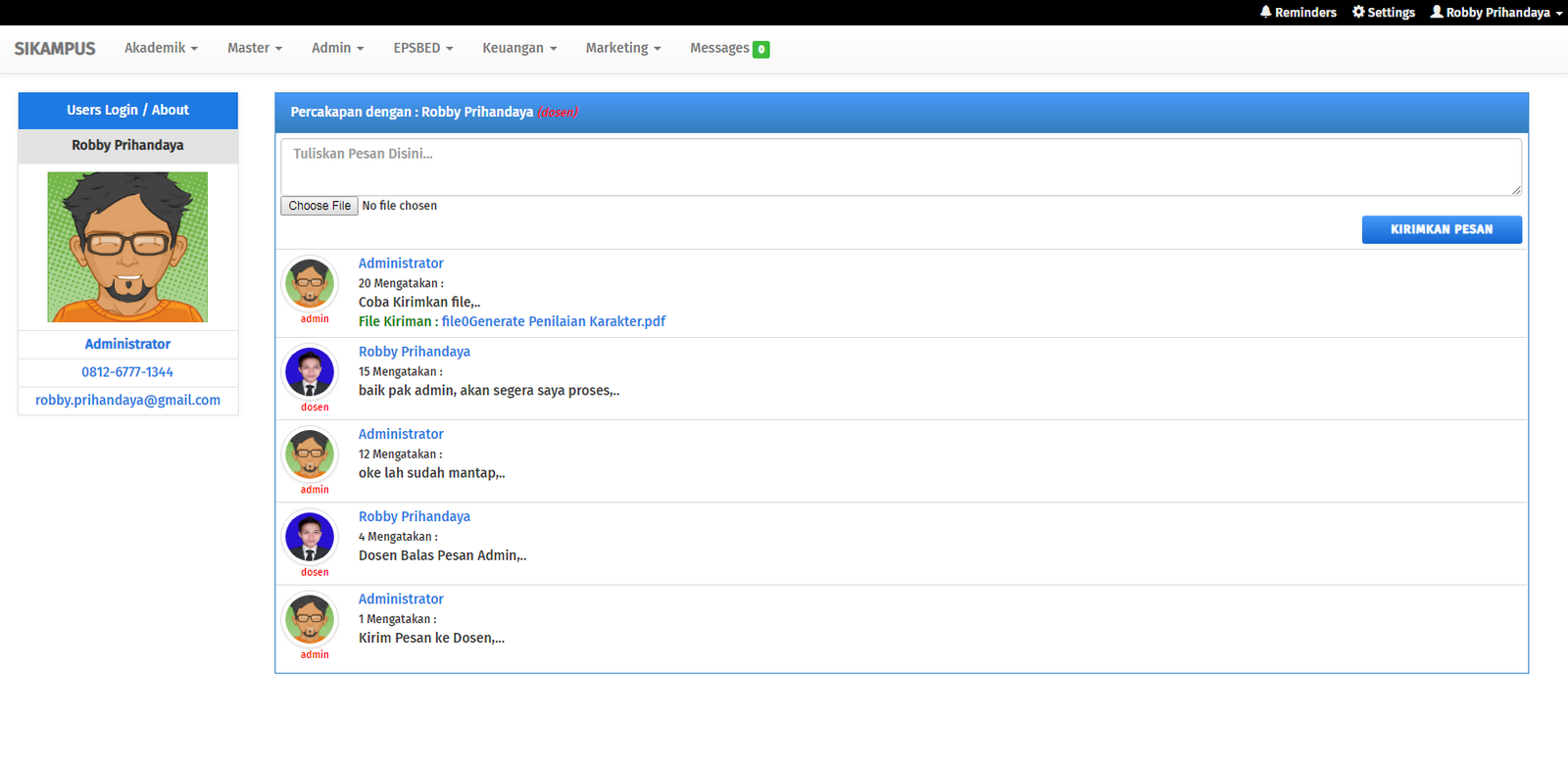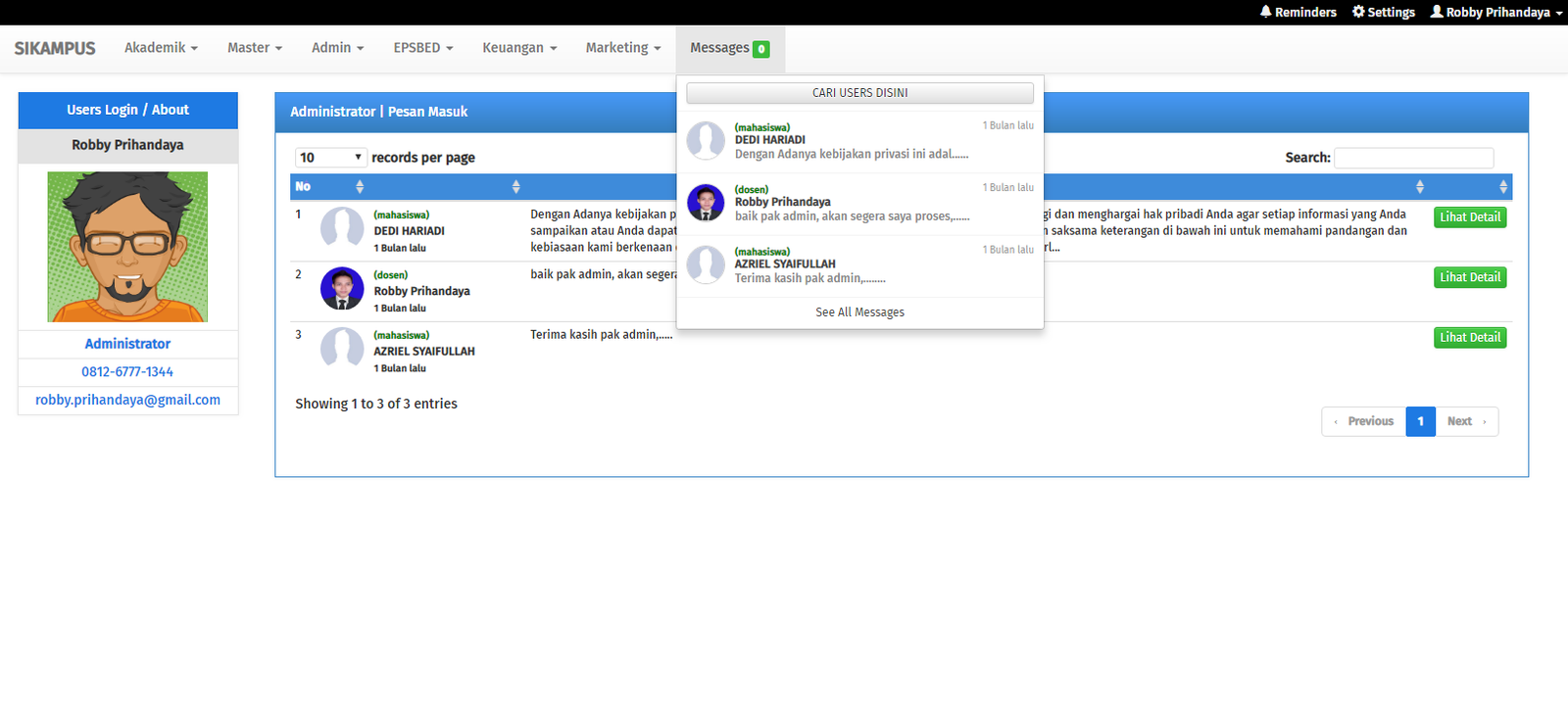 Sistem informasi akademik adalah suatu sistem yang dibangun untuk mengelola data-data akademik, sehingga memberikan kemudahan kepada pengguna dalam kegiatan administrasi akademik kampus secara online. Sistem Informasi Akademik ini dikembangkan oleh Bpk. Roki Aditama yang sudah berpengalaman dalam mengembangkan sistem informasi akademik dan pernah menulis buku Best Seller di Lokomedia dengan judul Sistem Informasi Akademik Kampus Berbasis Web dengan PHP.